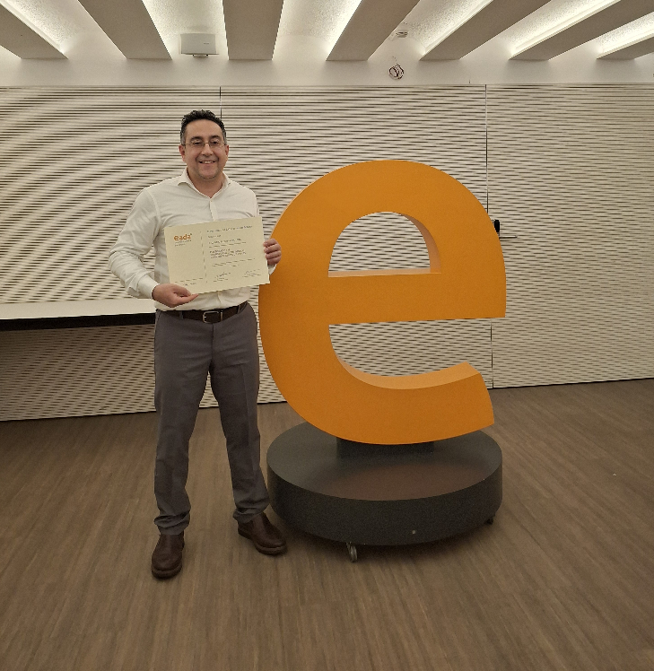 Foto con diploma y la icónica «e» de EADA Business School